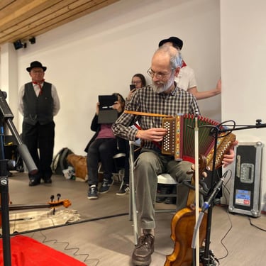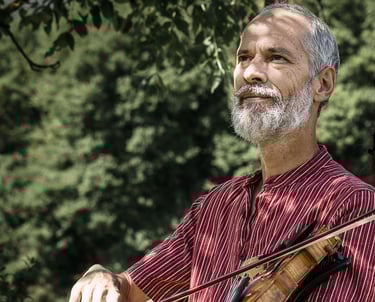 Olivier Geay rencontre les musiques traditionnelles dans les années 1980, par le mouvement « folk » qui se développe à Annecy. Il fréquente ensuite des stages en musique irlandaise, suédoise, klezmer et d’Europe centrale. Pendant les 5 ans où il vit en Italie, il joue avec plusieurs groupes de musique traditionnelle, accompagne au violon la chanteuse Grazia De Marchi et initie des rencontres de musiques et danses traditionnelles mensuelles dans le village de Giare (Valpolicella, Vérone). Il découvre et étudie le répertoire et le rituel du Carnaval de Bagolino, auquel il assiste souvent. Il obtient en 2019 le Diplôme d'État de professeur de musique traditionnelle au Cefedem de Lyon et enseigne actuellement aux écoles de musique de Rumilly et Saint-Jorioz. Il est membre du duo Balancez vos Ames !, initiateur du projet La Band'a Jâna et joue également dans d'autres groupes de la région savoyarde.